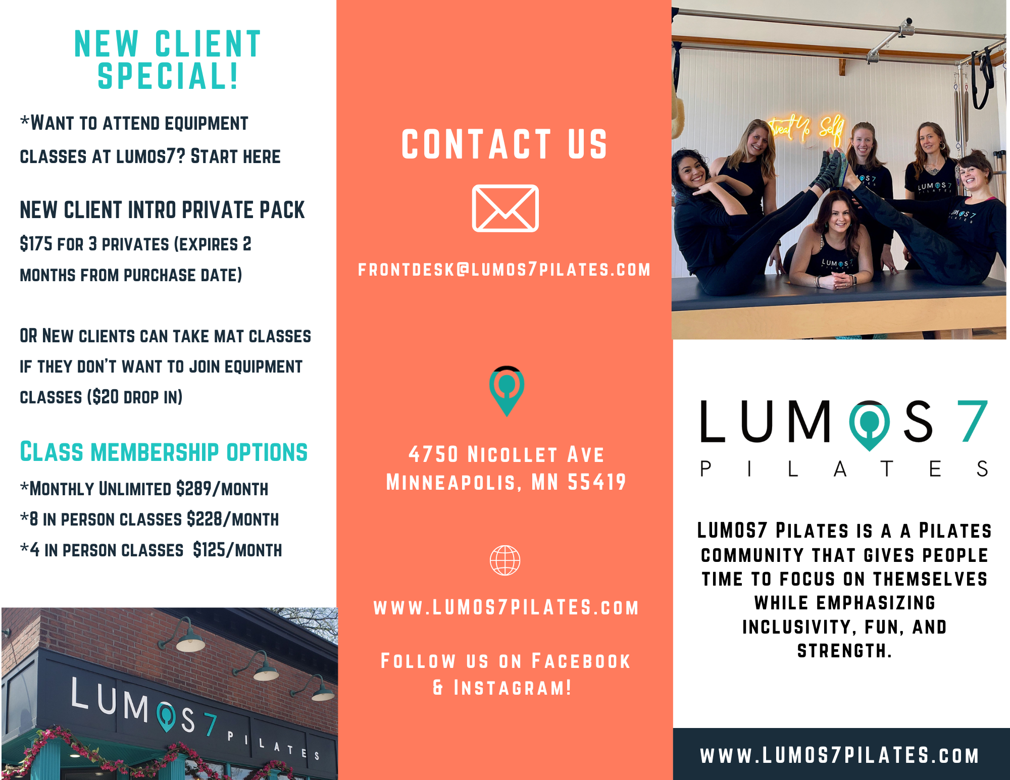 Please email us at frontdesk@lumos7pilates.com to learn how to get started with private lessons. All clients start with privates and then may have the option to join group classes.